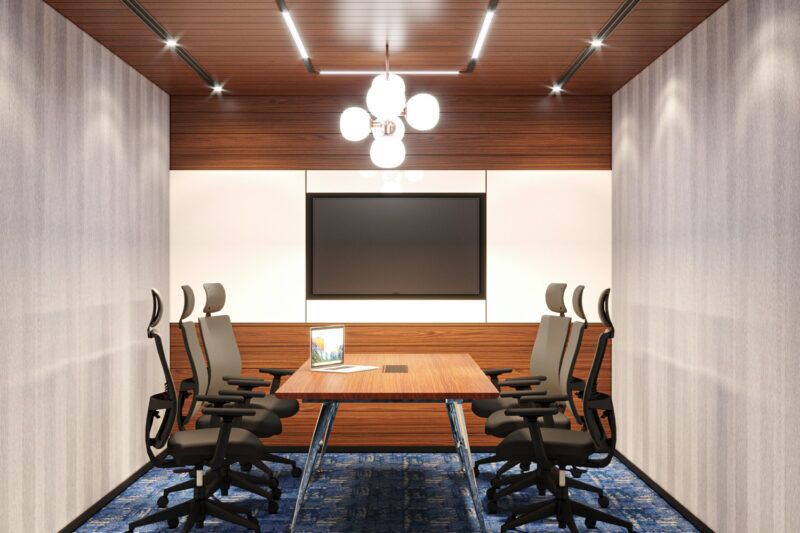 People visiting the office get a view of your reception as the first impression. You need to make a compelling first impression to stand out. A stylish circular ceiling with backlighting or a bold rectangular ceiling with hanging lights are the two best options.