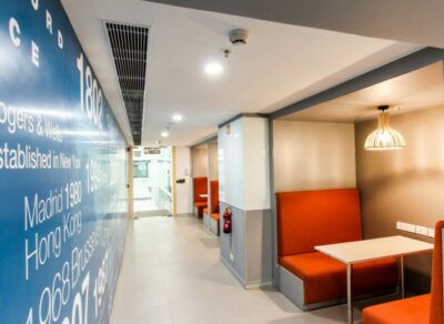 Clifford Chance is one of the most well renowned international law firms. Headquartered in London, it ranks as one of the top ten largest law firms in the world. Team SKV designed and built their Gurugram office. Inspired by clean, minimalistic, and functional design, the office has a splash of vibrant colors to add dimensions.