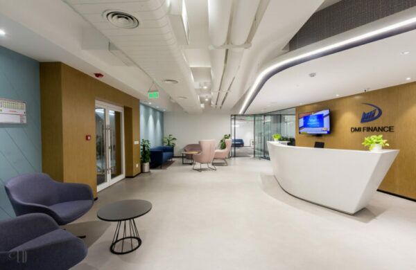DMI Finance leads with solutions backed by technology and clutter-breaking innovations. We designed and built their latest office to reflect upon these key virtues that the brand upholds with each service they offer. A space that enables hyper-productivity with a well-designed layout and clean, minimalistic, and modern aesthetic. Our design team after extensive research chose a warm color palette from deep blues to resplendent wooden browns.