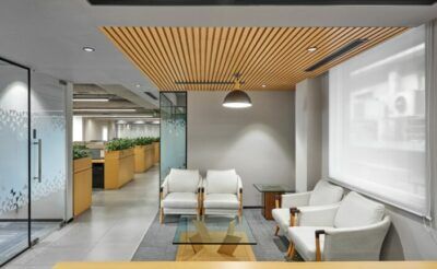 Spanning across 20,000 square feet, the Noida corporate office for Udayat (East India Udyog Ltd) is designed and built by SKV. Designed to incorporate a minimalistic aesthetic that serves higher functionality and hyper-productivity, the interiors of the office are kept simple with the use of natural materials, such as leather, wood, and hemp.